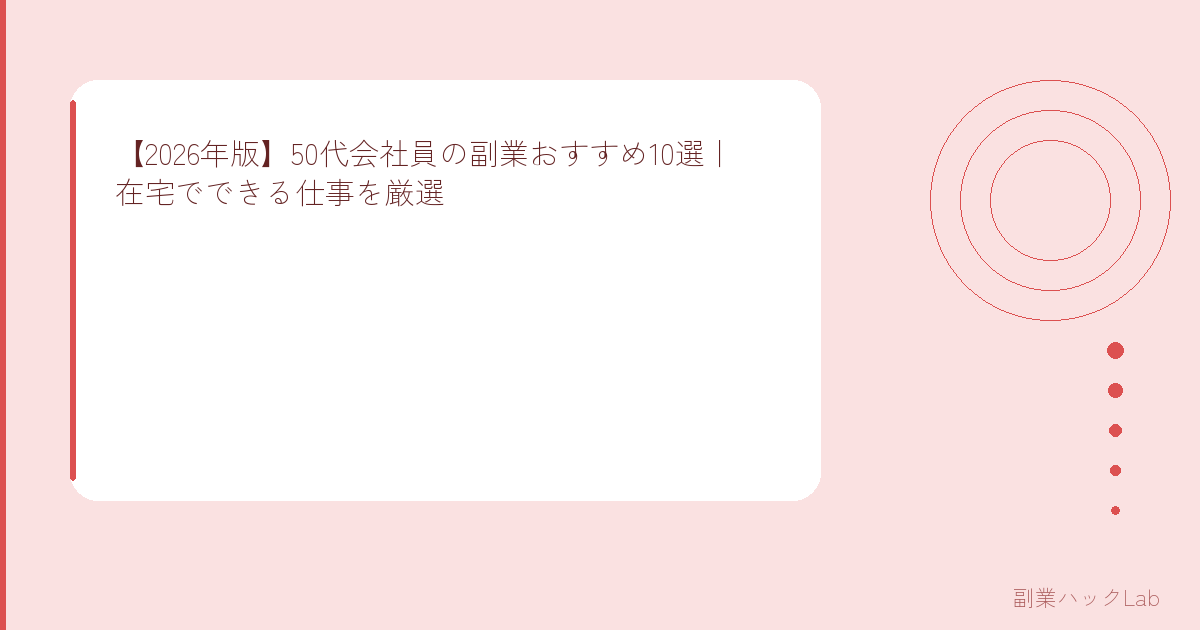 この記事では、50代が在宅でできる副業10選を月収目安・難易度つきで紹介します。これから副業を始める方は副業の始め方ガイドもあわせてどうぞ。