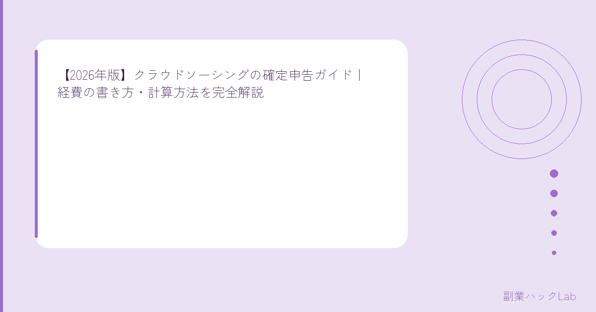 「クラウドソーシングの収入って確定申告どうするの?」「経費ってどこまで認められるの?」