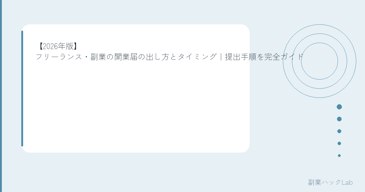 「開業届って出さなきゃダメ?」「いつ出すのがベスト?」「会社にバレない?」——副業やフリーランスを始めると必ず出てくる疑問ですよね。(手続きの詳細は国税庁 個人事業の開業届出をご確認ください)