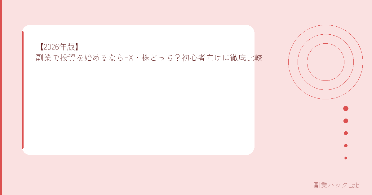 「副業として投資を始めたいけど、FXと株のどっちがいいんだろう?」「初心者でも失敗しない方法は?」――副業で収入を増やしたいと考えたとき、投資は有力な選択肢の一つです。しかし、FXと株式投資はまったく性質が異なるため、自分に合わない方を選んでしまうと、大切な資金を失いかねません。
