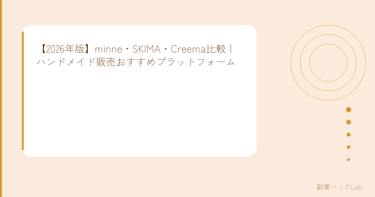 物理的なハンドメイド作品ならminne×Creemaの併用、デジタル作品(イラスト等)ならSKIMAがおすすめです。それぞれ強みが異なるので、自分の作品に合ったプラットフォームを選ぶことが成功への第一歩です。